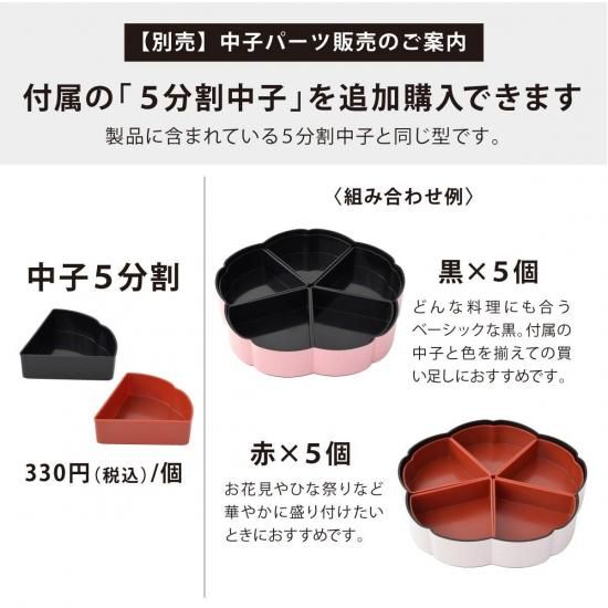 ※中子を追加購入された際は、追加分の中子を重箱にセットした状態でお届けする場合がございます。予めご了承くださいませ。