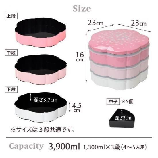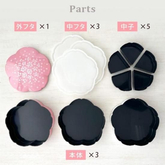 重箱 お重箱 弁当箱 3段 三段 2段 二段 1段 一段 7.5寸 仕切り 仕切り付き 容器 シール蓋 シール中蓋付き モダン 山中 漆器 食器 正月 お節 パーティー おもてなし オードブル 銘々盛 おしゃれ シンプル 和風 洋風 さくら サクラ 桜 花 かわいい 可愛い 華やか 美しい 花柄 さくら柄 桜柄 おすすめ ピンク つや ツヤ 艶 グラデーション キラキラ パール 花びら 新年 お正月 迎春 おせち おせち料理 お節料理 桃の節句 ひなまつり ひな祭り お花見 お花見弁当 春 春のイベント 運動会 母の日 レジャー 行楽 ピクニック プラスチック 合成漆器 日本 山中塗 山中漆器 蒔絵 ランチボックス 大きい 家族 子供 子ども